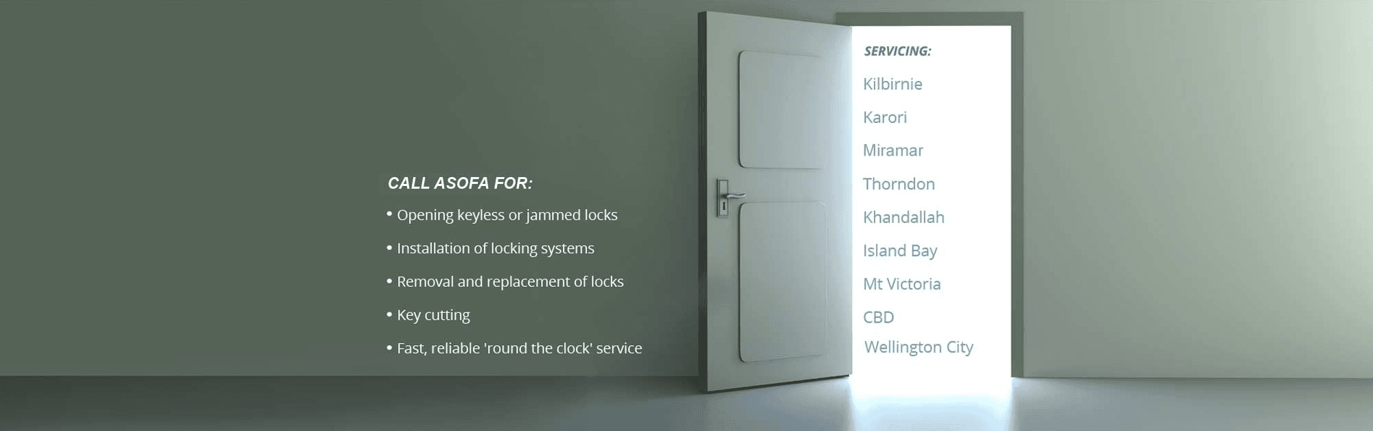 Asofa Locksmith Services - expert in removing old locking devices, cutting new keys, replacing the locks in your home or business and of course, unlocking locks when you can’t find the key! Talk to me about installing security locking systems, or even if you’re locked out of your car, business or home, call Wellington’s
